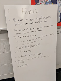 3. Question Words:  Forming questions is sometimes difficult for our world language students.  Using the same idea as the Gallery Walk (with the large white boards) put a question word on each board (qué, quién, cómo, dónde, etc.)  Students can work in small groups to brainstorm one question for each word about the topic.  In my class, we were in the AP theme: Public/Personal Identities.  They were learning about Hispanic heroes, and right before a Socratic Seminar, they practiced forming questions to learn more about each other’s heroes.  Some examples:  ¿De dónde es tu héroe?  ¿Quién influyó sus acciones?  ¿Cómo era tu héroe cuando era niño?  By forming questions, they are doing higher-order thinking, which is really what we want to see our students achieve.