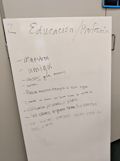 3. Question Words:  Forming questions is sometimes difficult for our world language students.  Using the same idea as the Gallery Walk (with the large white boards) put a question word on each board (qué, quién, cómo, dónde, etc.)  Students can work in small groups to brainstorm one question for each word about the topic.  In my class, we were in the AP theme: Public/Personal Identities.  They were learning about Hispanic heroes, and right before a Socratic Seminar, they practiced forming questions to learn more about each other’s heroes.  Some examples:  ¿De dónde es tu héroe?  ¿Quién influyó sus acciones?  ¿Cómo era tu héroe cuando era niño?  By forming questions, they are doing higher-order thinking, which is really what we want to see our students achieve.
